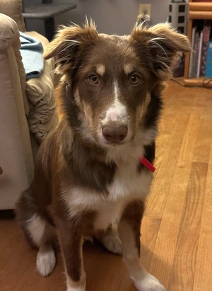 This gorgeous red-tri Aussie boy is around 8 months old and has a full, beautiful tail that adds to his charm. His soft, fuzzy puppy fur makes him irresistible to cuddle! Brick is everything an Aussie pup should be, smart, affectionate, and a little mischievous. He is also potty trained.
