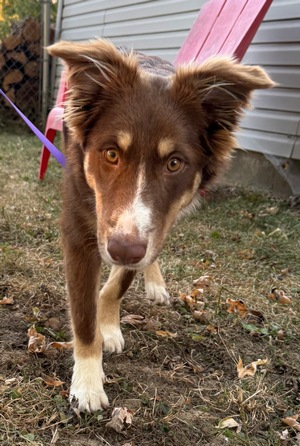 This handsome 5 month old Aussie/Border Collie mix is more than just a handsome face, he’s smart, driven, and full of personality. With his striking red tri coat and full tail, Hank turns heads wherever he goes.