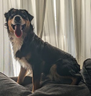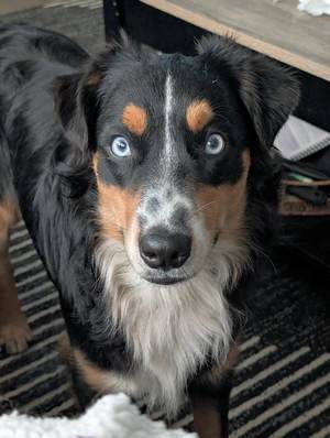 Scout is one of those dogs who makes you smile without even trying. He’s got the classic Aussie charm — smart, funny, and full of energy — but he also knows how to kick back and chill when it’s time to relax. He’ll come when called, settle down when asked, and then sneak in for a full-face snuggle when you least expect it.