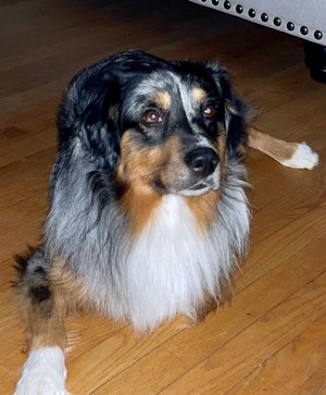 This is Ozzy. He is a 3 yr old blue merle with ASCA papers who has lost his home with large yard and owners want him to have more run time outside. Excellent with women, men and kids; needs intro to strangers but does well after a few minutes. He is housebroken and leash trained. He loves toys. Please contact Daniel for more information at daniel.colon.laboy@gmail.com