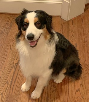 Pappy is a 4 year old, weighing 38 lbs, and is a tri-colored blue merle purebred AKC Registered (owner has papers) Australian Shepherd. He is microchipped and up to date on all vaccinations. Pappy has had a lifetime of training through BarkBusters.com